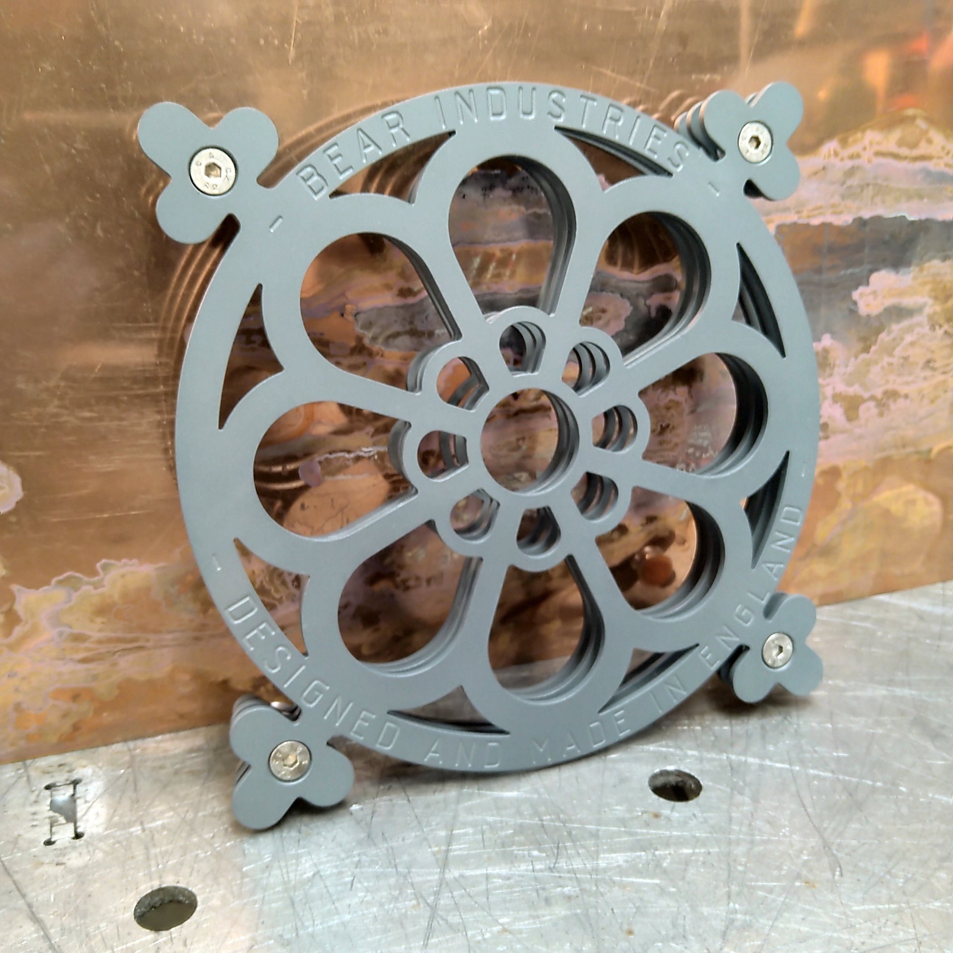These beautiful cast iron trivets are made from broken cast iron panels salvaged from scrap yard.. The panels are believed to be damaged floor grates from Norwich Catherdral.. They have been given a new life and feature rubber feet to avoid scratching work surfaces..